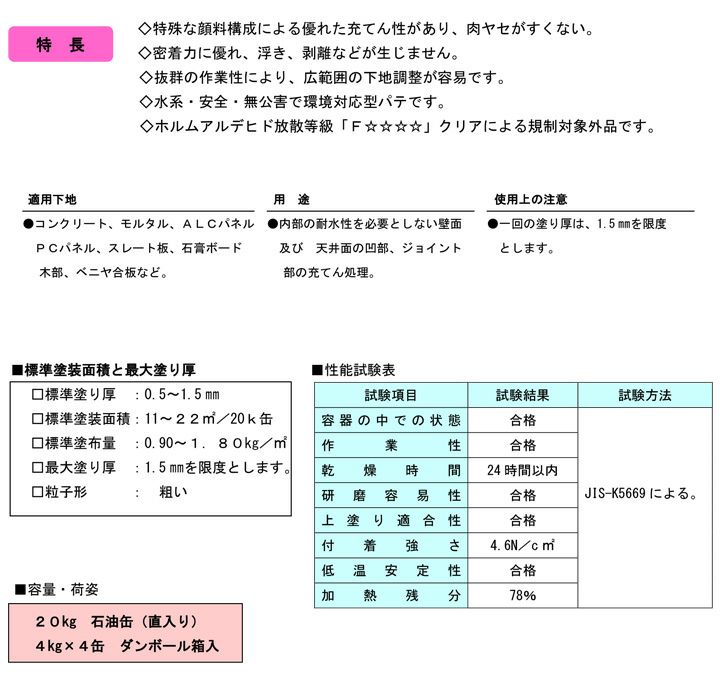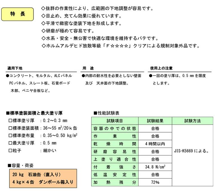 他の画像を見る 特殊な顔料構成による優れた充てん性があり肉ヤセが少ない一般形厚付用骨材入りの下地用パテ メーコー 下地用パテ 20kg 販売価格 ¥ 7,480 税込 会員価格 ¥ 7,250 税込 カートに入れる お気に入りに登録する (0)