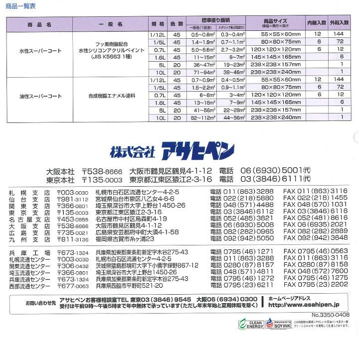 他の画像を見る 屋内外の木部からアルミ・トタン、モルタル・コンクリート壁まで!超耐久の2倍長持ち多用途塗料。 油性スーパーコート 5L(アサヒペン) 販売価格 ¥ 11,220 税込 会員価格 ¥ 10,120 税込 詳細を見る お気に入りに登録する (0)