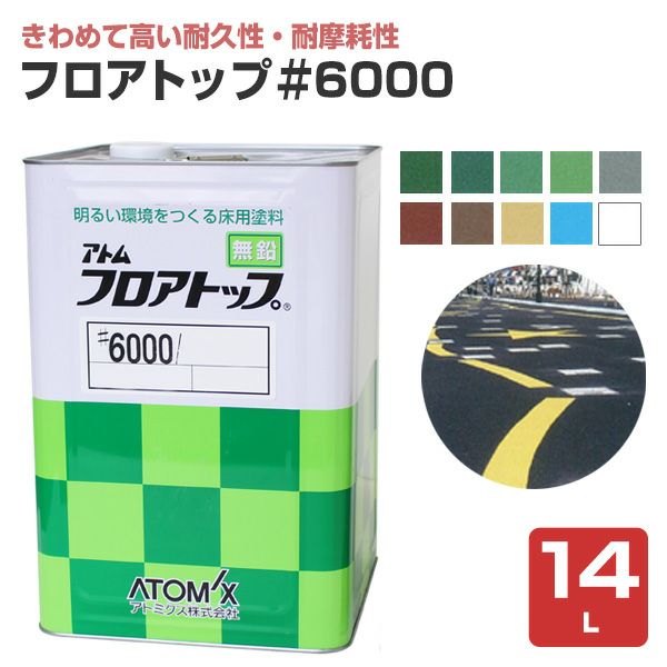 アトミクスのフロアトップ#6000は、耐久性、耐摩耗性のきわめて高いペイントタイプの既設アスファルト面用塗料・塗布型カラー舗装材です。一般構造物内の既設アスファルト床面の美化、保護、緻密化のほか、その優れた耐久性を活かして広く屋外の遊歩道、スクールゾーン、公園などのアスファルト面のカラー化に使用されています。