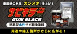 サビキラープロガンブラックは、BAN-ZI社が提供する水性の錆転換塗料で、サビキラープロと同様の効果で、ガンブラックが登場。赤錆を黒錆に転換し、錆の進行を効果的に抑制します。