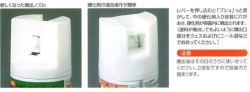 ●間隔をおいて使用するときは、噴出□が詰まらないよう容器を逆さにして2秒くらい空吹きをし、噴出□をよく拭いてください。