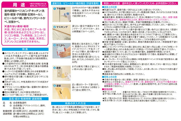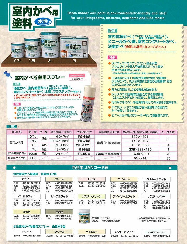 他の画像を見る 水性(2分つや)のインテリアペイント!塗り易い塗料 室内かべ用塗料 1.6L(カンペハピオ) 販売価格 ¥ 4,730 税込 会員価格 ¥ 4,620 税込 カートに入れる お気に入りに登録する (0)