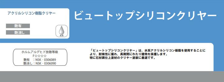 他の画像を見る 仕上塗材の保護クリヤーとして使用できる超耐候性反応硬化形アクリルシリコン樹脂塗料 ビュートップシリコン クリヤー 15kg (菊水化学/水性) 販売価格 ¥ 25,300 税込 会員価格 ¥ 24,540 税込 カートに入れる お気に入りに登録する (0)