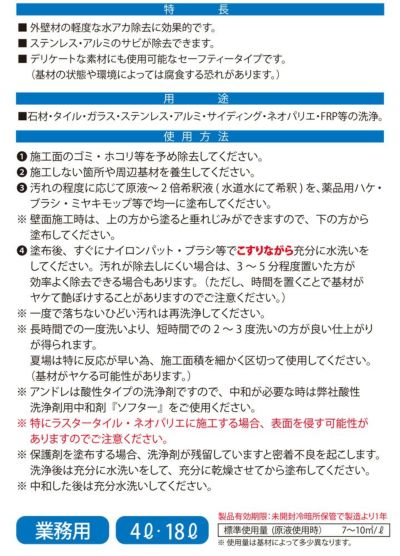 石材、タイル、ガラス、ステンレス、サイディング等の洗浄!業務用 軽度汚染用汎用洗浄剤 ミヤキ アンドレ 4L (軽度汚染用汎用洗浄剤/外壁/石材/ステンレス/アルミ/業務用)