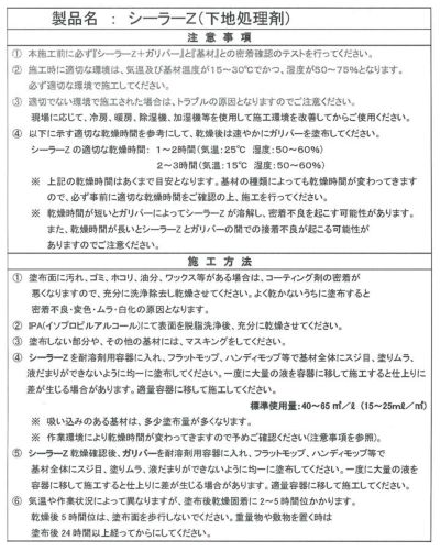 注意事項 ・本施工前に必ず「シーラーZ+ガリバー+」と「基材」との密着テストを行って下さい。
