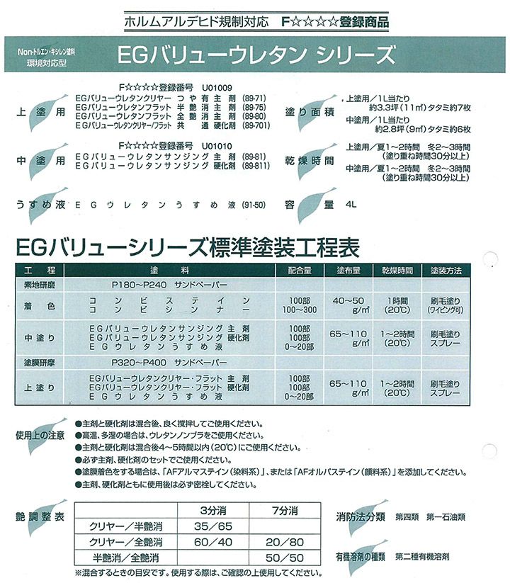 3.EGバリューウレタンフラットとEGバリューウレタンクリヤーの硬化剤が共通です。