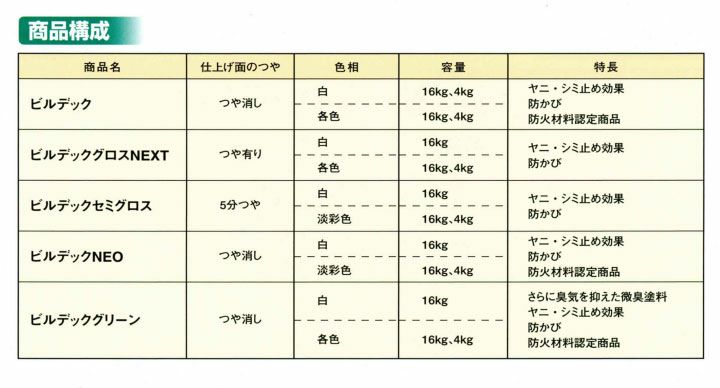 他の画像を見る 防かび性、ヤニ・シミ抑え効果、浸透性が強く、旧塗膜や多少のチョーキング面にもシーラー無しでも塗装できます。 ビルデック Neo 白 16kg (大日本塗料 弱溶剤系強膜塗料) 販売価格 ¥ 9,570 税込 会員価格 ¥ 9,280 税込 カートに入れる お気に入りに登録する (0)
