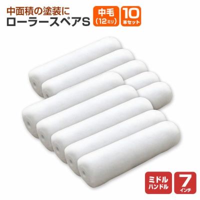 ★7インチ幅(約18センチ幅)の中毛ミドルローラー!中面積の塗装に最適です。お得な5本セット! ローラースペアS ミドル 7インチ 中毛 12mm × 10本セット (MR-712M)