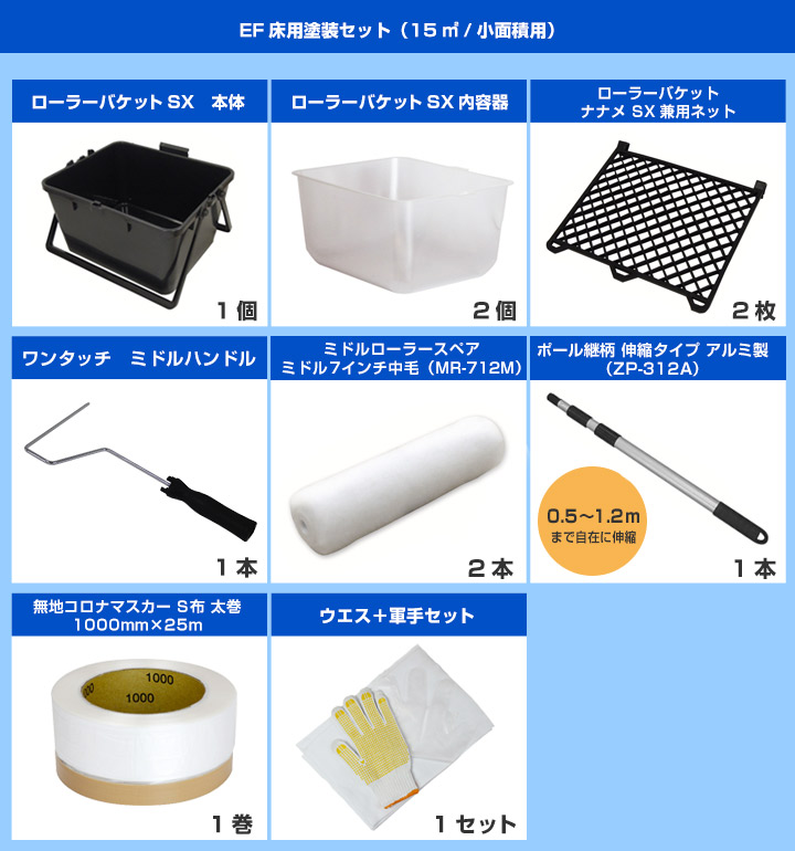床塗装に最適な当店オリジナル塗装用具キット(小面積用)! EF床用塗装セット(15m2 / 小面積用 )(塗装用具 / STK-08N) 塗装セット 塗装用具セット DIY
