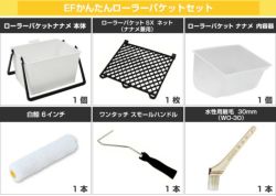EFかんたんローラーバケットセットは、ローラー塗装に最低限必要な用具類をセットにした塗装用具セットです。