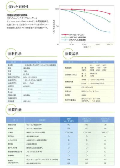 耐候性、低汚染性を大幅に向上させた水性のつや有り環境対応形塗料!一液水性アクリルシリコン塗料 DNTビューシリコン 艶有 白 15kg(一液水性アクリルシリコン塗料/大日本塗料)