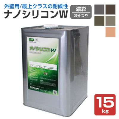 ナノシリコンテクノロジーにより最上クラスの耐候性を備えた水性アクリルシリコン樹脂外壁塗料! ナノシリコンW 3分艶 提案色(濃彩) 15kg (外壁用塗料/水谷ペイント)
