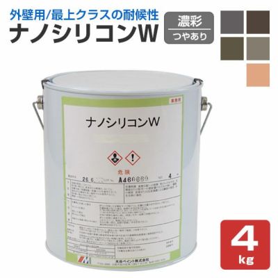 ナノシリコンテクノロジーにより最上クラスの耐候性を備えた水性アクリルシリコン樹脂外壁塗料! ナノシリコンW 艶有り 提案色(濃彩) 4kg (外壁用塗料/水谷ペイント)