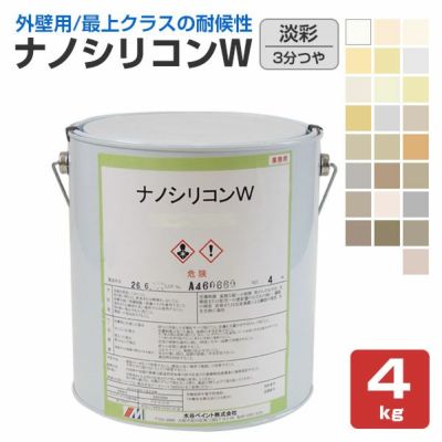 ナノシリコンテクノロジーにより最上クラスの耐候性を備えた水性アクリルシリコン樹脂外壁塗料! ナノシリコンW 3分艶 提案色(淡彩) 4kg (外壁用塗料/水谷ペイント)