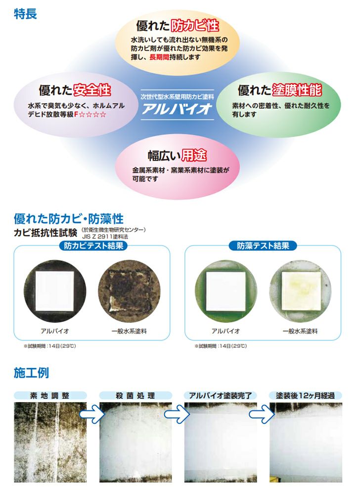 他の画像を見る ★品質的に非常に評価の高い防カビ塗料を日本の市場に合致させ開発した防カビ塗料! アルバイオ 白 16kg (水系壁用防カビ塗料/水谷ペイント) 販売価格 ¥ 16,720 税込 会員価格 ¥ 16,220 税込 カートに入れる お気に入りに登録する (0)