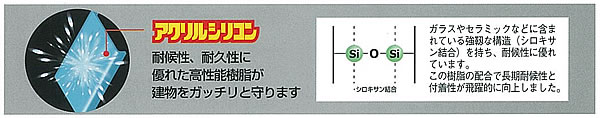 2.アクリルシリコン樹脂が紫外線、排気ガス、酸性雨、塩害の汚れに強い強靭な塗膜を形成します。