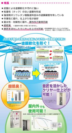 ・強溶剤ポリウレタン樹脂塗料並みの塗膜硬度を有しています。