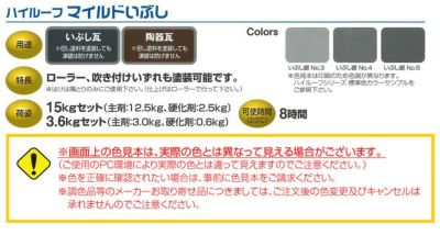 大同塗料のハイルーフマイルドいぶしは、いぶし瓦や陶器瓦の塗装でシーラー、プライマーが省けて塗れる弱溶剤2液型シリコンアクリル樹脂系塗料です。 「ハイルーフマイルドシリコン」同様に、シーラーやプライマーといった下塗り用の塗料が不要です。この塗料の大きな特長は、従来では塗装が難しかった「いぶし瓦」に塗装することが可能になった点です。