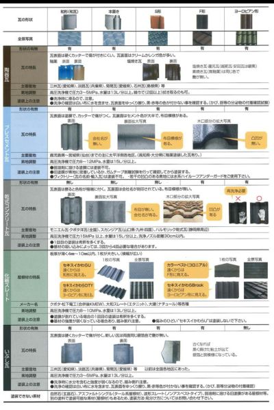 用途 いぶし瓦、陶器瓦(但し、塗料を塗装しても凍破は防げません)