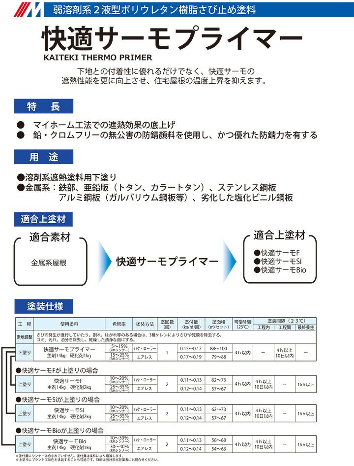 他の画像を見る 快適サーモシリーズのプラント工法の塗装仕様で使用する屋根用下塗り材です。 サーモベースプライマー 12.8kgセット(水谷ペイント/下塗り材) 販売価格 ¥ 21,230 税込 会員価格 ¥ 20,590 税込 カートに入れる お気に入りに登録する (0)