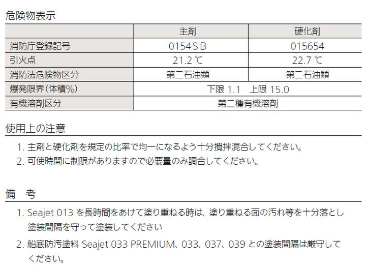 他の画像を見る ★FRPのオズモシスも防止、海中防サビの決定版! SEA JET 013 2Lセット (エポキシ樹脂系防食塗料 Seajet 中国塗料) 販売価格 ¥ 8,250 税込 会員価格 ¥ 8,030 税込 カートに入れる お気に入りに登録する (0)