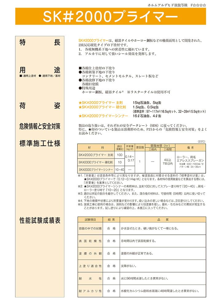 他の画像を見る ★磁器タイルやホーロー鋼板などの釉薬面用として開発された2液反応硬化タイプの下塗り材! SK#2000プライマー 5.5kgセット (エスケー化研/下塗り/2液) 販売価格 ¥ 16,500 税込 会員価格 ¥ 16,000 税込 カートに入れる お気に入りに登録する (0)