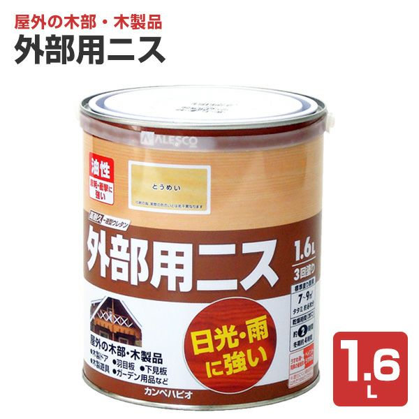 他の画像を見る 屋外で使用できる耐候性のある外部用ニスです。ペンキ/塗料 カンペハピオ 外部用ニス とうめい 1.6L 販売価格 ¥ 4,400 税込 会員価格 ¥ 4,270 税込 カートに入れる お気に入りに登録する (0)