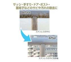 用途 ●ステンレス(ヘアライン)手すりのサビや汚れの除去