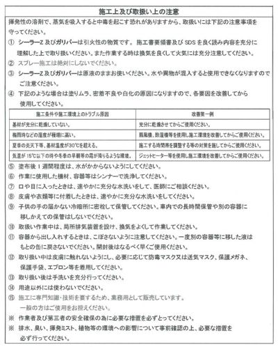 注意事項 ・本施工前に必ず「シーラーZ+ガリバー+」と「基材」との密着テストを行って下さい。