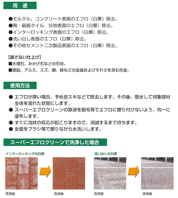 他の画像を見る 【業務用】エフロレッセンス(白華)、温泉スケールの除去剤!強力エフロ除去剤 ミヤキ ハッカトル 4L (強力エフロ除去剤/白華・温泉スケール/石材/タイル/業務用) 販売価格 ¥ 8,250 税込 会員価格 ¥ 8,010 税込 カートに入れる お気に入りに登録する (0)