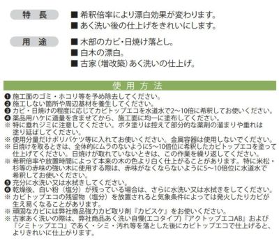 【業務用】木部のカビ取り漂白剤!あく洗い後のカビ落としに最適!木部のシミ抜きレブライトの普通物タイプ ミヤキ カビトップエコ 1.8L (木部のカビ取り漂白剤/あく洗い後の仕上げ)