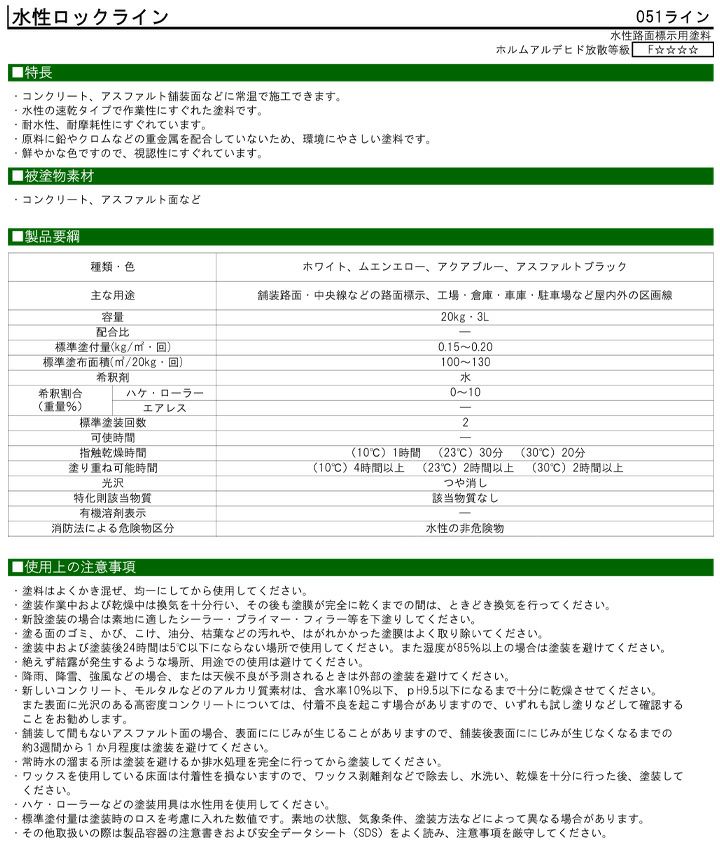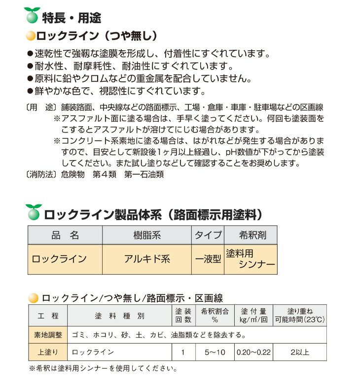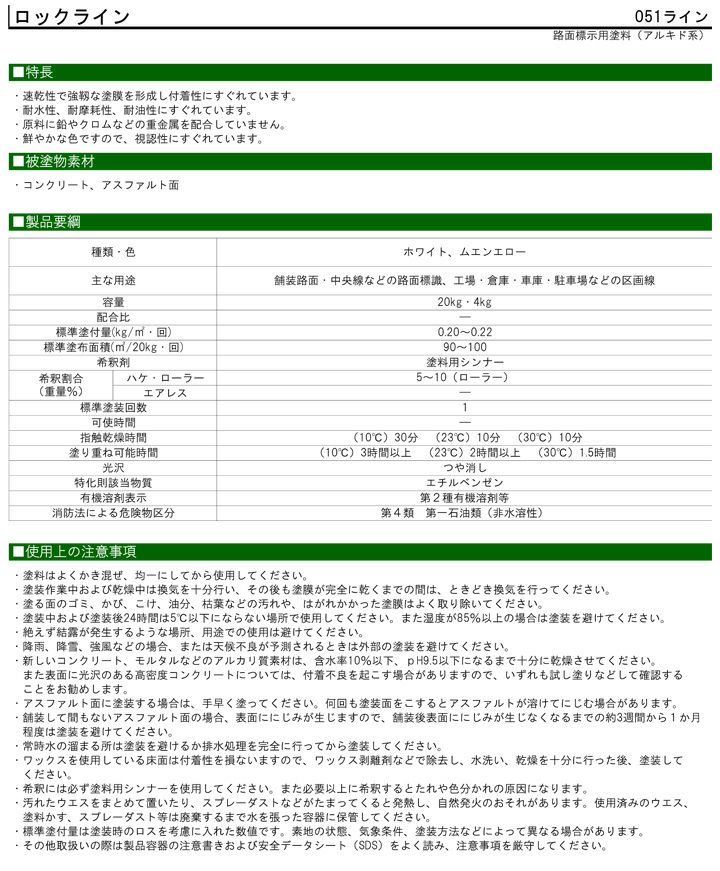 他の画像を見る 路面標示用塗料 ロックライン ムエンエロー 20kg (051-0035/ロックペイント) 販売価格 ¥ 17,600 税込 会員価格 ¥ 17,070 税込 カートに入れる お気に入りに登録する (0)