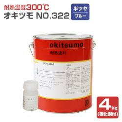 耐熱光沢保持性に優れた耐熱温度300℃の耐熱塗料! オキツモ No.322 半ツヤ ブルー 4kg(耐熱温度300度/硬化剤付)