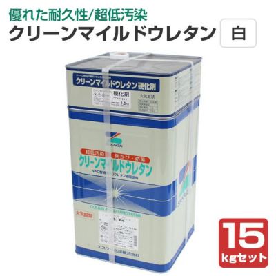 高性能な超低汚染・高耐久NAD型特殊ポリウレタン樹脂塗料! 【P10倍!】 クリーンマイルドウレタン 艶有 白 15kgセット (超低汚染弱溶剤形樹脂塗料/エスケー化研)