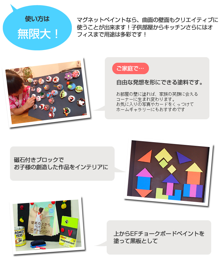 塗ったところにマグネットが付く!水性タイプでクロス壁やボードに塗れます。
