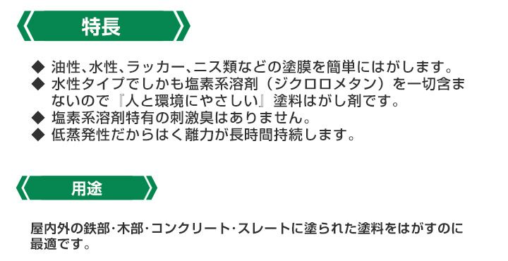 他の画像を見る 人と環境にやさしい非塩素系タイプ! 非塩素系塗料はがし剤 300g(カンペハピオ/塗料はがし剤) 販売価格 ¥ 1,980 税込 会員価格 ¥ 1,920 税込 カートに入れる お気に入りに登録する (0)