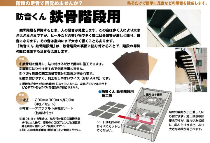 他の画像を見る ★貼るだけで簡単に足音などの騒音を軽減します! 防音くん「鉄骨階段用」(4枚入り/箱)×3箱 (防音シート/制振シート/防音材/オトナシート/日本特殊塗料/ニットク/DIY) 販売価格 ¥ 8,250 税込 会員価格 ¥ 7,590 税込 カートに入れる お気に入りに登録する (0)