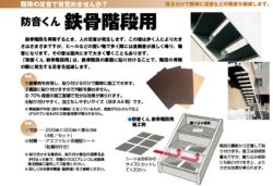 日本特殊塗料の「防音くん鉄骨階段用」は、鉄骨階段の裏面に貼り付けることで、階段の昇降の際に発生する足音を低減します。