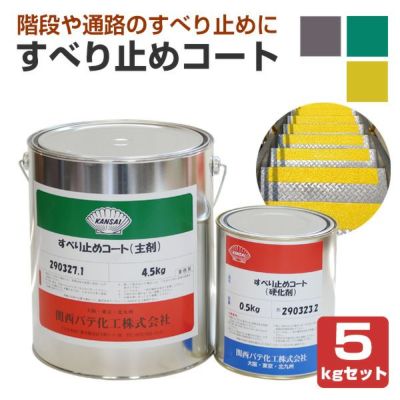 階段や通路のすべり止めに最適!プライマー不要のエポキシタイプ。 すべり止めコート 5kgセット (関西パテ化工/2成分型ライニング材)