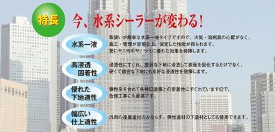 ダイヤワイドシーラーは使いやすい水系一液のエポキシシーラーで、火気・溶剤臭の心配がなく、浸透性にすぐれていますので、あらゆる下地や旧塗膜に対応、新築はもちろ、改修工事の完全水系仕様を、溶剤系同等の性能で可能にします。