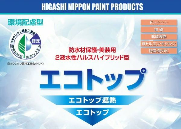 他の画像を見る ウレタン防水材や外装材工事用のトップコート材で遮熱タイプ!防水/外装/トップコート材/水性 東日本塗料 エコトップ遮熱 白 12kgセット 販売価格 ¥ 23,760 税込 会員価格 ¥ 23,100 税込 カートに入れる お気に入りに登録する (0)
