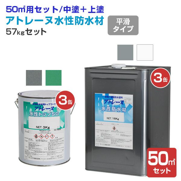 他の画像を見る 約50平米の屋上の塗り替えに最適な水性防水材セット! 【P10倍!】 アトレーヌ水性防水材 平滑フラットタイプ 50m2セット (57kgセット) <2色> 平滑遮熱トップコート 屋上・ベランダ・バルコニー等の簡易防水 (一液水性防水材セット) アトミクス 販売価格 ¥ 64,680 税込 会員価格 ¥ 63,580 税込 詳細を見る お気に入りに登録する (0)