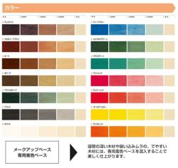 注意事項 ※木材は種類によって発色が変わります。また、同じ種類でも吸い込み方で発色が変わりますので、必ず試し塗りを行って下さい。