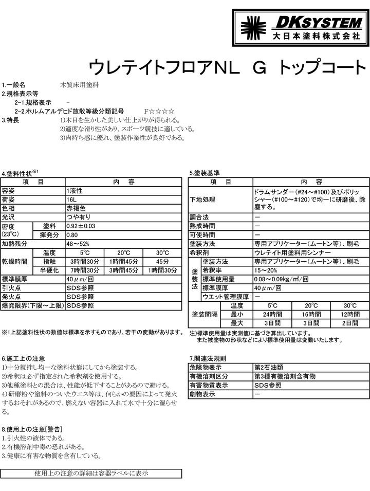 他の画像を見る 体育館、教室、武道館、フィットネスジム、各種ホールに最適なウレテイトフロアシリーズのトップコート ウレテイトフロアNL G トップコート 艶有 赤褐色 16L(大日本塗料/木質床用塗料) 販売価格 ¥ 17,325 税込 カートに入れる お気に入りに登録する (0)