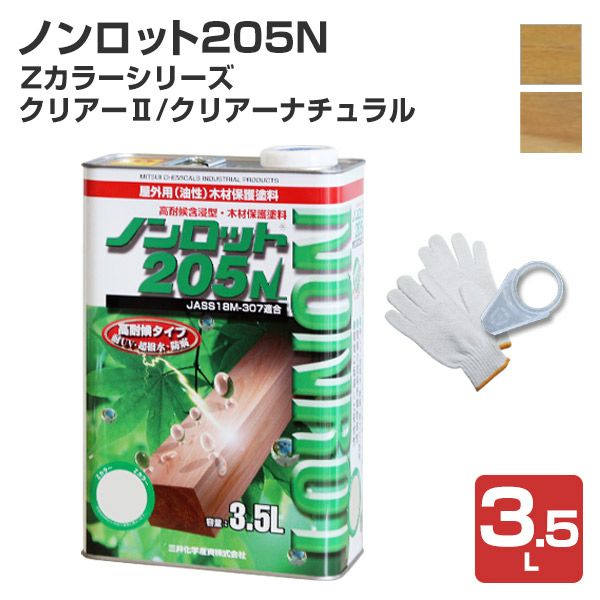 【P10倍!】 ノンロット205N Zカラー 透明系 3.5L <2色> WPステイン (油性 超撥水 耐UV 高耐候 木材保護 屋外 木部用 ウッドデッキ) 前田工繊産資/三井化学産資(軍手+注ぎ口プレゼント)