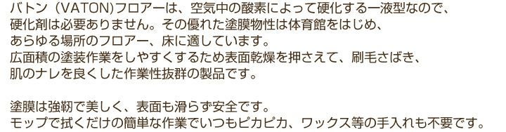 他の画像を見る 安全性が高いので学校・店舗・住宅の木製フロアー・床塗装に最適! バトンフロアー 艶有り 3.5kg (油性/大谷塗料) 販売価格 ¥ 8,360 税込 会員価格 ¥ 8,250 税込 カートに入れる お気に入りに登録する (0)