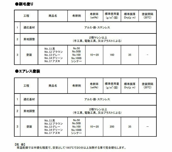 他の画像を見る 最も手軽に使用できるツヤ消し普及タイプの耐熱塗料! オキツモ#17 ツヤ消し アズキ 4kg(耐熱300度) 販売価格 ¥ 9,900 税込 会員価格 ¥ 9,790 税込 カートに入れる お気に入りに登録する (0)