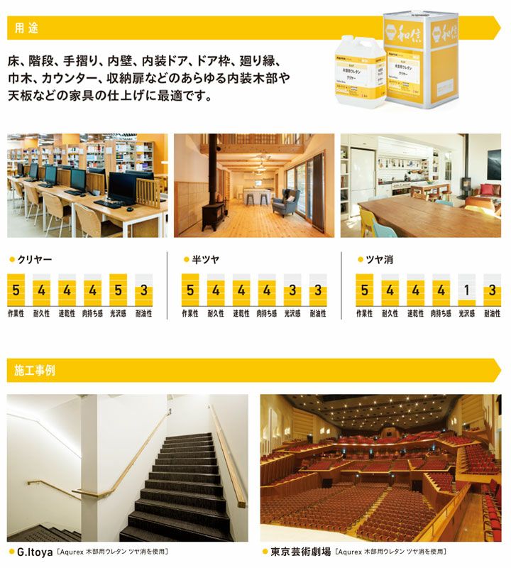 他の画像を見る 高性能水性ウレタン塗料!屋内建具や家具の仕上げに最適です! 【P10倍!】 アクレックス 木部用ウレタン クリヤー 3.5kg (164733/和信化学工業/ Aqurex/水性/屋内/木部用) 販売価格 ¥ 9,130 税込 会員価格 ¥ 8,800 税込 カートに入れる お気に入りに登録する (0)