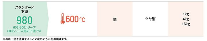 他の画像を見る オキツモ耐熱塗料スタンダードシリーズの下塗り材! オキツモ#980 スタンダード用下塗 錆 16kg (耐熱温度600度) 販売価格 ¥ 44,000 税込 会員価格 ¥ 42,680 税込 カートに入れる お気に入りに登録する (0)