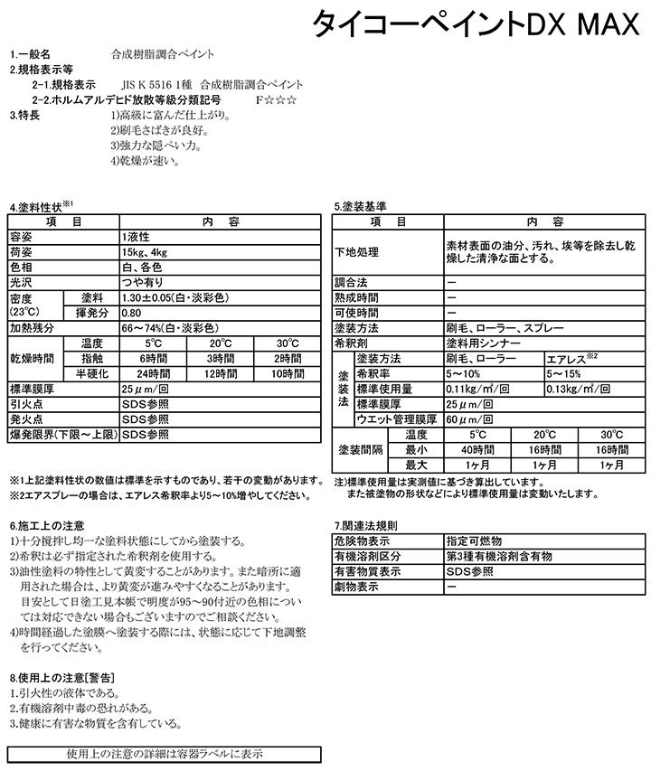 他の画像を見る 一般鉄骨、ベランダ手摺、フェンス、巾木、羽目板などに最適な合成樹脂調合ペイント! タイコーペイント DX-MAX 白 15kg (大日本塗料/合成樹脂調合ペイント) 販売価格 ¥ 10,450 税込 会員価格 ¥ 10,140 税込 カートに入れる お気に入りに登録する (0)
